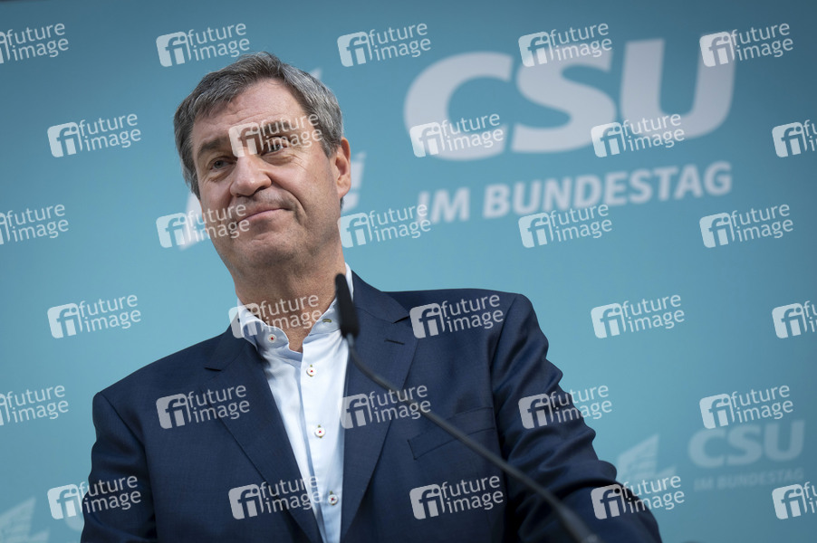 Markus Söder bei einer Pressekonferenz der CSU in der Vertretung des Freistaates Bayern beim Bund. Berlin, 25.02.2025