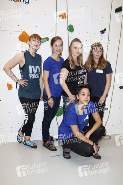 Sabrina Ziegler, Ilka Groenewold, Regina Halmich, Alexa Benkert und Joanna Semmelrogge beim 'Promi-Klettern im Atrium in der Europa Passage. Hamburg, 13.06.2019