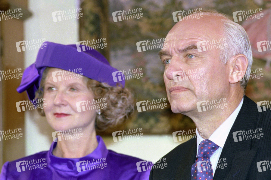 Irm Hermann und Charles Brauer beim Fototermin am Set des TV-Films 'Willi und die Windzors'. Hannover, 09.06.1996