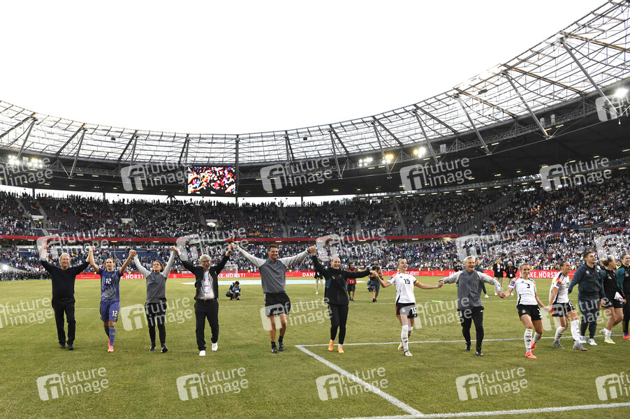 Jubel nach dem Sieg beim Frauenfußball EM-Qualifikationsspiel Deutschland gegen Österreich (4:0) in der Heinz-von-Heiden-Arena. Hannover, 16.07.2024