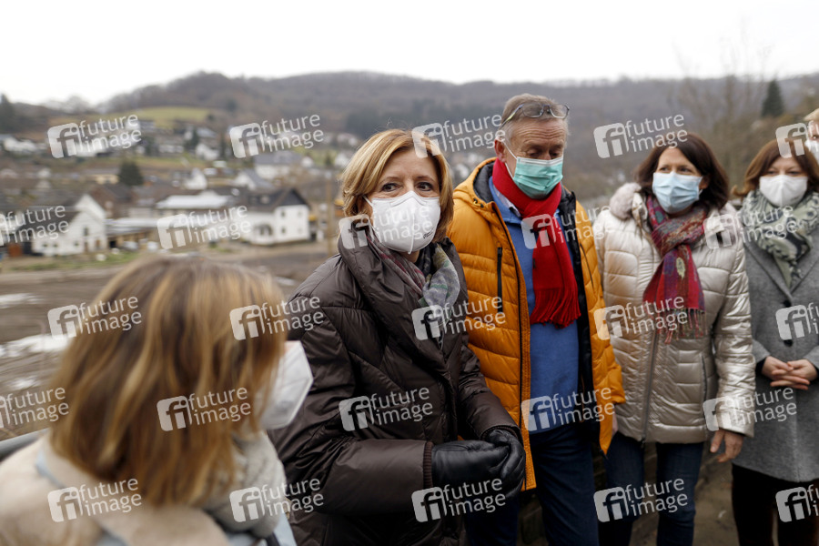 Daniela Schmitt, Malu Dreyer und Katrin Eder besuchen sechs Monate nach der Jahrhundertflut das Ahrtal, um Bestandsaufnahme in der Ortsgemeinde Schuld zu machen. Schuld, 12.01.2022