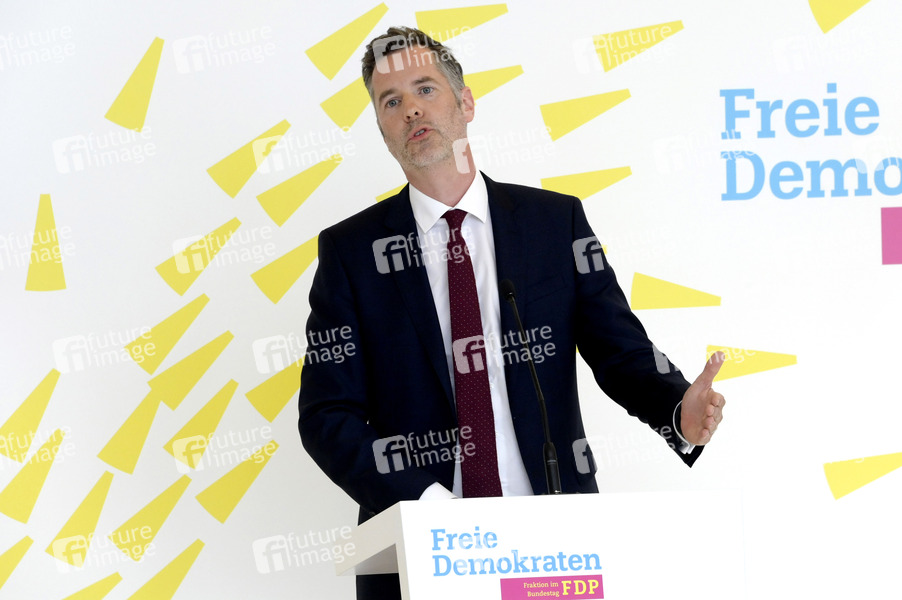 Christian Dürr beim Statement der FDP-Bundestagsfraktion vor der Fraktionssitzung auf der Fraktionsebene im Reichstagsgebäude. Berlin, 30.05.2022