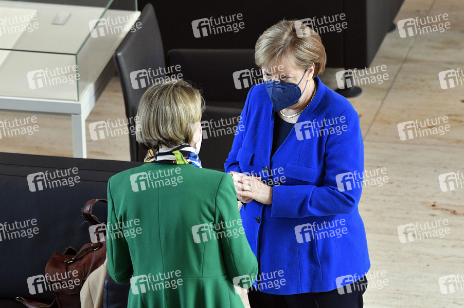 Angela Merkel bei einer Abstimmung im Rahmen der 227. Sitzung des Deutschen Bundestages im Reichstagsgebäude. Berlin, 06.05.2021