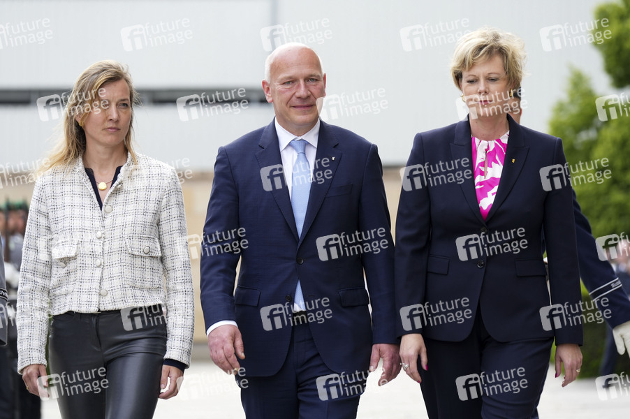 Siemtje Möller, Kai Wegner und Cornelia Seibeld beim öffentlichen Gelöbnis des Wachbataillons beim Bundesministerium der Verteidigung auf dem Vorplatz des Abgeordnetenhauses von Berlin. Berlin, 22.05.2024