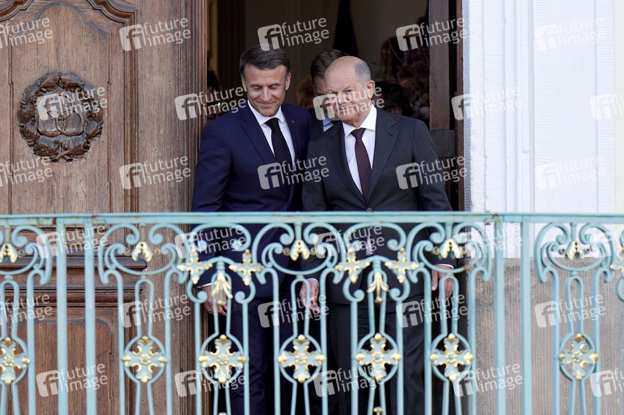 Emmanuel Macron und Olaf Scholz beim Treffen des Deutsch-Französischen Ministerrats im Gästehaus der Bundesregierung Schloss Meseberg. Meseberg, 28.05.2024
