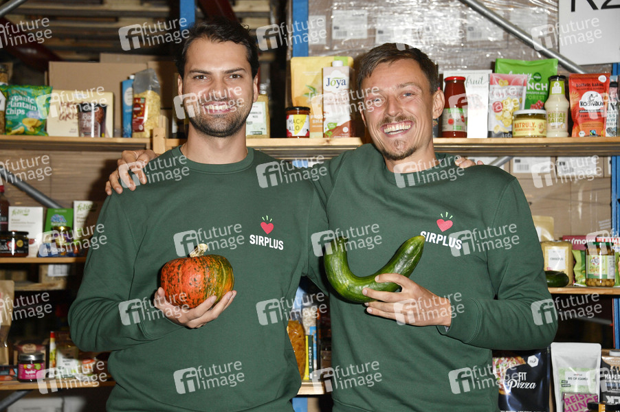 Jimi Blue Ochsenknecht und Raphael Fellmer beim Kochen mit geretteten Lebensmitteln von Sirplus anlässlich des Internationalen Tages gegen Lebensmittelverschwendung im Sirplus Warehouse. Berlin, 29.09.2022