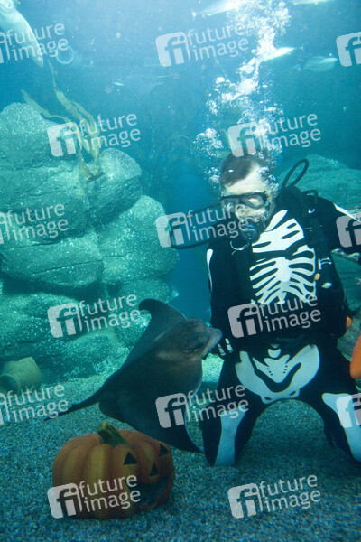 Unterhaltung, Entertainment, Taucher, Tauchen, Skelett, Fische, Sea Life Berlin, Halloween Aktion, Unterwasser, Tiere, Fische, Meeerestiere, Meeresbewohner