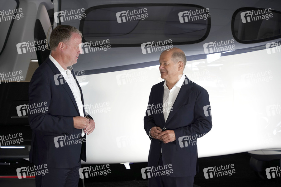 Olaf Scholz vor einem Lilium Jet beim Eröffnungsrundgang der ILA Berlin auf dem ILA-Gelände am Flughafen BER Berlin-Brandenburg. Berlin, 05.06.2024
