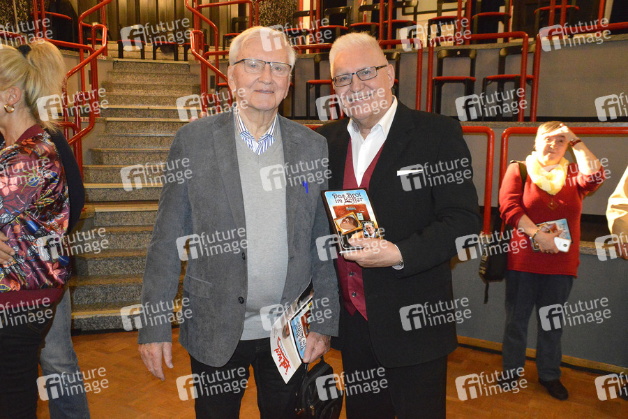 Peter Wieland und Detlef Heising bei der Buchvorstellung 'Das Brot im Koffer' von Detlef Heising in der Studiobühne im Freizeitforum Marzahn. Berlin, 17.03.2019