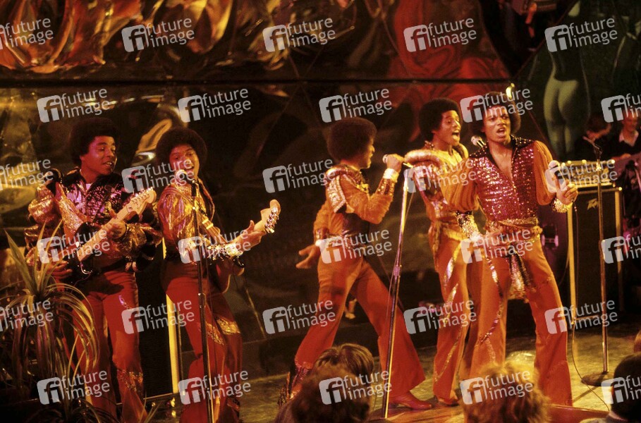 The Jacksons bei einer TV-Aufzeichnung im Musikladen in Bremen (Michael Jackson, Jackie Jackson, Tito Jackson, Marlon Jackson, Jermaine Jackson)