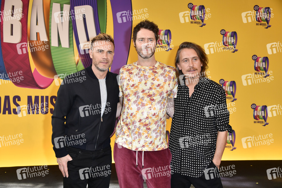 Gary Barlow, Howard Donald und Mark Owen von Take That beim Photocall zu 'The Band - Das Musical' im Stage Theater des Westens. Berlin, 01.04.2019