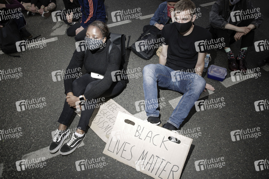 Ein Teil der Demonstranten der 'Silent Demo' am Alexanderplatz zog weiter zum Strausberger Platz und veranstaltete eine Sitzblockade. Berlin, 06.06.2020