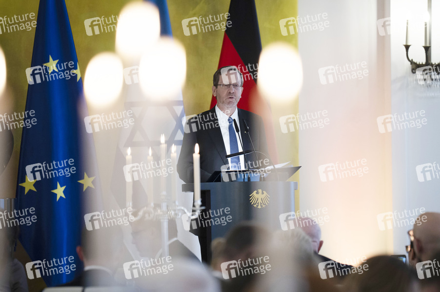 Isaac Herzog beim festlichen Abendessen zur Würdigung des 60-jährigen Jubiläums der Aufnahme diplomatischer Beziehungen zwischen der Bundesrepublik Deutschland und Israel am 12. Mai 1965 im Schloss Bellevue. Berlin, 12.05.2025