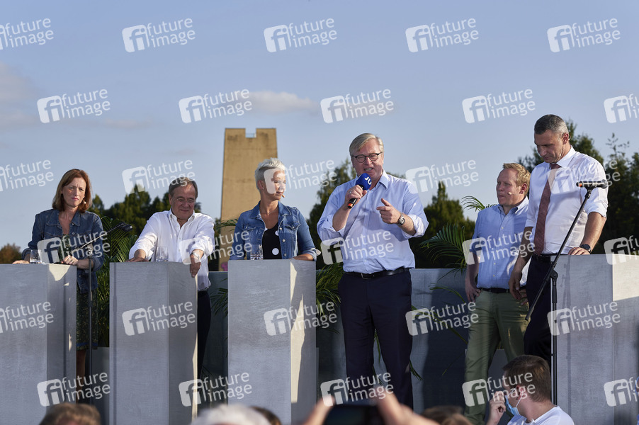 Karin Prien, Armin Laschet, Silvia Breher, Bernd Althusmann, Tilman Kuban und Vitali Klitschko in der Wahlkampfarena der Jungen Union zur Bundestagswahl im Expowal. Hannover, 04.09.2021