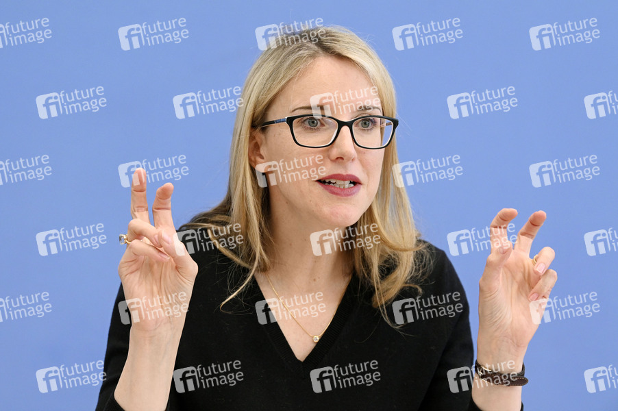 Prof. Dr. Alena Buyx bei der Pressekonferenz zur Vulnerabilität und Resilienz in der Krise - Ethische Kriterien für Entscheidungen in einer Pandemie im Haus der Bundespressekonferenz. Berlin, 04.04.2022