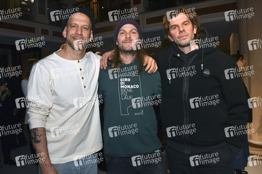 Florian Weber, Peter Brugger und Rüdiger Linhof von Sportfreunde Stiller bei der 21. Verleihung der Best Brands Awards 2024 im Hotel Bayerischer Hof. München, 27.02.2024