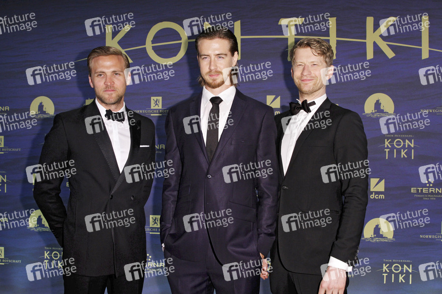 Tobias Santelmann, Pal Sverre Valheim Hagen und Odd Magnus Williamson bei der Filmpremiere des Kinofilms 'Kon Tiki' im Kino International. Berlin, 06.03.2013