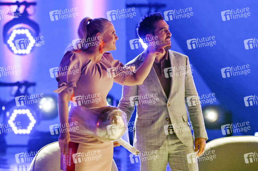 Barbara Schöneberger und Elyas M'Barek bei der Aufzeichnung der ARD-Unterhaltungsshow 'Verstehen Sie Spass?' im Studio H in Berlin-Adlershof. Berlin, 31.03.2022