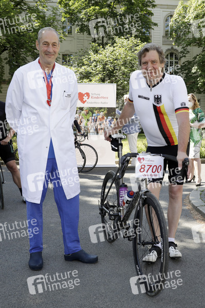 Prof. Dr. med Felix Berger und Uwe Rohde beim Start zur 6. Etappe der HerzRadtour zugunsten der Stiftung KinderHerz vor dem Deutschen Herzzentrum Berlin. Berlin, 07.06.2021