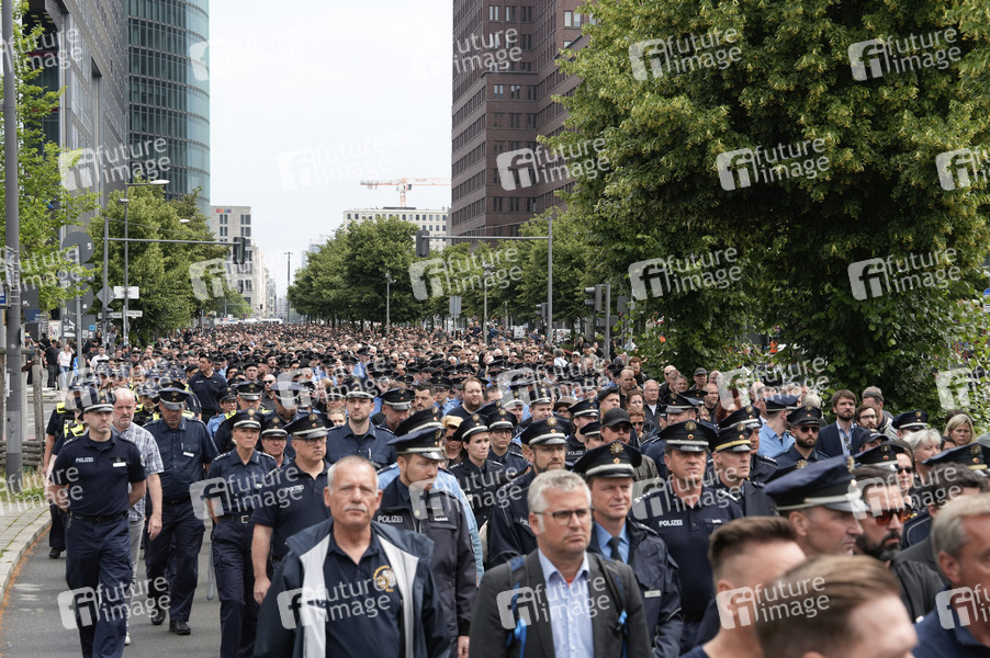 Polizisten in Uniform beim Schweigemarsch für den ermordeten Mannheimer Polizisten Rouven L. vom Potsdamer Platz zur Landesvertretung Baden-Württemberg. Berlin, 07.06.2024