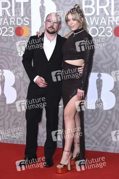 Becky Hill mit ihrem Verlobten Charlie Gardner bei der Verleihung der 43. BRIT Awards 2023 in der O2 Arena. London, 11.02.2023