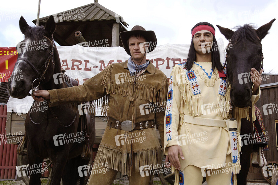 Pressetermin zu 'Winnetou I' der Karl May Freilichtspiele mit Erol Sander als Winnetou und Thorsten Nindel als Old Shatterhand im Indian Village, Bad Segeberg