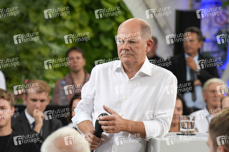 Olaf Scholz beim Kanzlergespräch mit Bürgern in der ufaFabrik. Berlin, 04.09.2024
