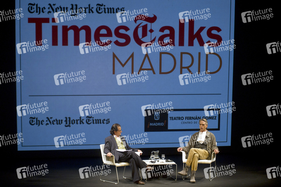 Podiumsdiskussion mit Jeremy Irons und dem Herald Tribune und The New York Times Theaterkritiker Matt Wolf im Rahmen der Times Talks im Fernando Fernán Gómez Theater, Madrid