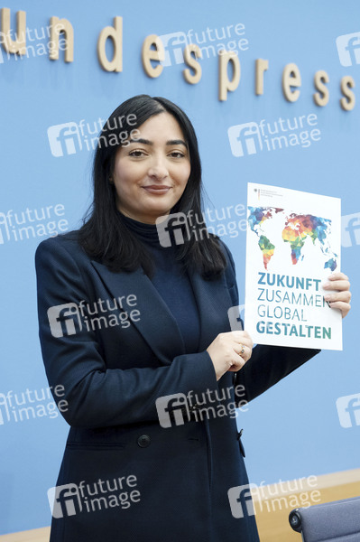 Reem Alabali Radovan bei der Bundespressekonferenz Reformplan 'Zukunft zusammen global gestalten' zur Neuausrichtung der deutschen Entwicklungszusammenarbeit im Haus der Bundespressekonferenz. Berlin, 12.01.2026