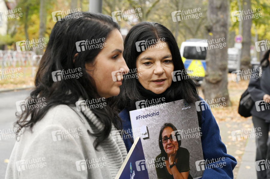 Daniela Sepehri, Minu Barati und Jasmin Tabatabai bei einer Protestaktion vor der Botschaft der Islamischen Republik Iran nach der Hinrichtung des Deutsch-Iraners Jamshid Sharmahd. Berlin, 29.10.2024