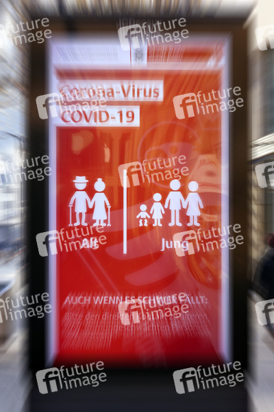 Eine Hinweistafel zum Verhalten mit Risikogruppen für Corona während der Coronakrise. Köln, 12.04.2020