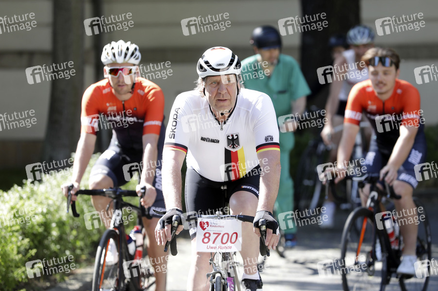Theo Reinhardt, Uwe Rohde und Johann Walser beim Start zur 6. Etappe der HerzRadtour zugunsten der Stiftung KinderHerz vor dem Deutschen Herzzentrum Berlin. Berlin, 07.06.2021