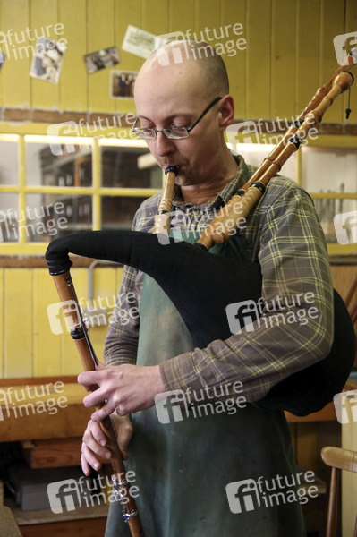 Aussterbende Zunft, Werkstatt, Instrumentenbau, Dudelsack, Sackpfeife, Holzblasinstrument, Sessionprotz, Schäferpfeife, Spielpfeife, Säckpipa, Säckpipor, Dudelsackmanufaktur, Handwerk, Werkzeuge, Werkzeuge, Herstellung, Hersteller, Innung, Zunft, Zünfte, Handwerkskunst, Handarbeit, Musik, Musikinstrument, Pfeife, Pfeifen, Kunsthandwerk, Symbolfoto, Symbolbild