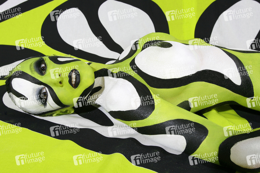 Bodypainting, Stoffdesign Anna Efverlund, Erotik, Frau, nackt, drinnen, weiblich, Muster, Chamäleon, erotic, woman, nude, indoor, female, chameleon