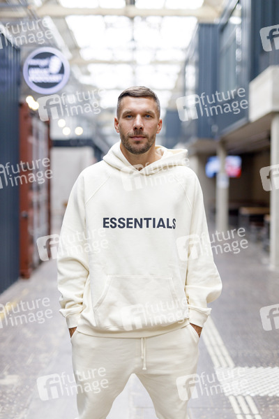 Lukas Podolski bei der Übergabe der Spende von 250.000 Euro aus der REWE Jackpot Aktion an die Lukas Podolski Stiftung in der Strassenkicker Base. Mit dem Großteil des gesammelten Geldes wird der Bau eines modernen Straßenkicker-Courts in Köln Müngersdorf unterstützt. Der darüber hinaus gehende Spendenbetrag fließt als Fördermittel in weitere soziale Projekte der Lukas Podolski Stiftung, vor allem in den Aufbau und die Unterstützung sportbasierter Bildungsprojekte für Jugendliche und Schulen in der Soccer Halle 'Strassenkicker Base' in Köln-Mühlheim (Quelle: https://fuerdenfussball.rewe.de/). Köln, 01.07.2021
