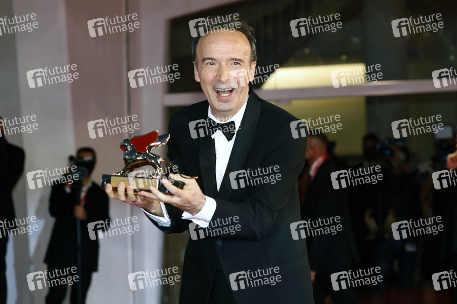Roberto Benigni mit dem Goldnen Löwen für sein Lebenswerk bei der Eröffnung der Biennale di Venezia 2021 / 78. Internationale Filmfestspiele von Venedig im Palazzo del Cinema. Venedig, 01.09.2021