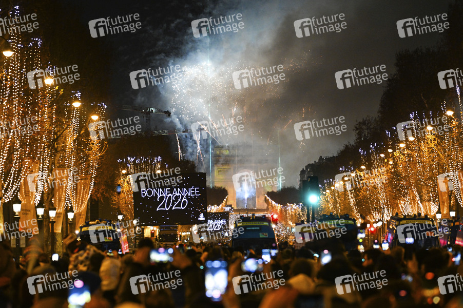 Silvesterfeuerwerk 2026 auf der Champs Elysees. Paris, 01.01.2026