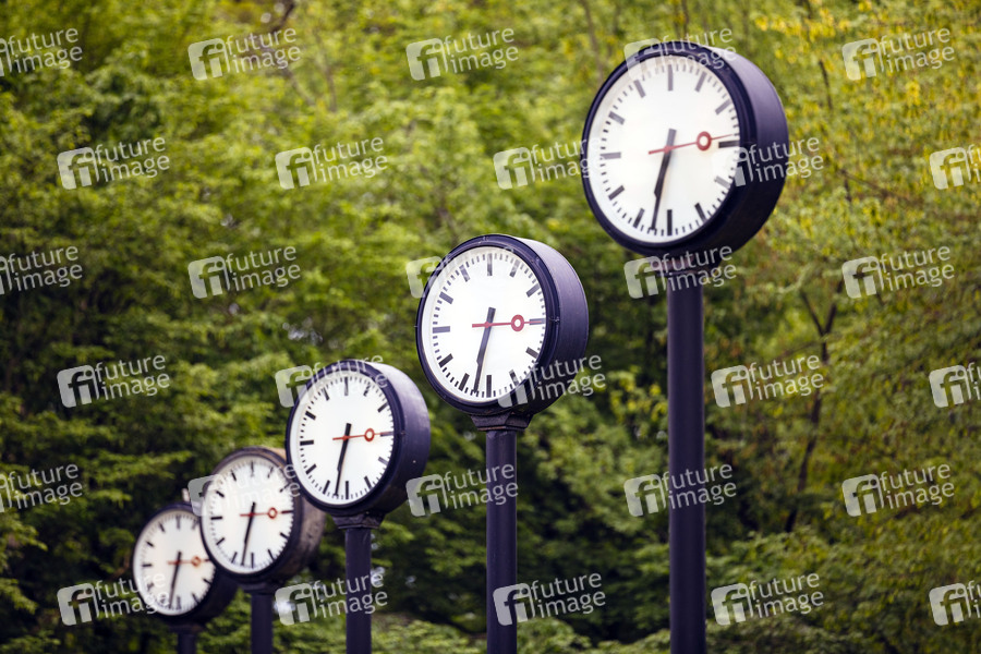 Uhren der Installation 'Zeitfeld' von Klaus Rinke. Düsseldorf, 05.08.2019
