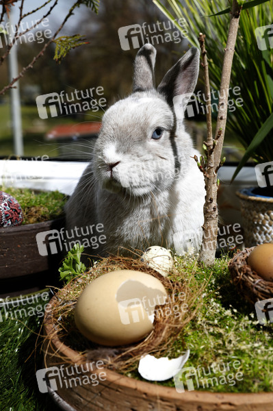 Hase, Osterhase, Kaninchen, Zwergkaninchen, Easter Bunny, Frohe Ostern, Oster-Geschenke, Ostern, Osternest, Ostersaison, Osterzeit, Ostereier, Feiertag, Ostersonntag, Ostermontag, Symbolfoto, Symbolbild