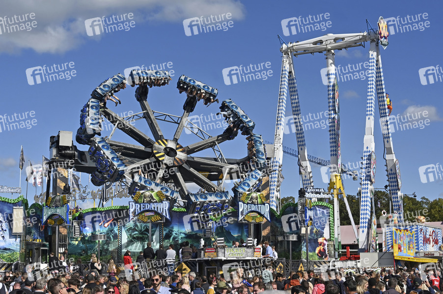 Feature, Unterhaltung, Entertainment, Kultur, Fest, Volksfest, 189. Wiesn, Wies'n, Fahrgeschäft, Vergnügungsattraktion, Schausteller, Festzelt, Festzelte, Vergnügen, Alkohol, Bier, Maß, Alkoholkonsum, Trachten, Brauerei, Brauereien, Gastronomie, Wiesnbesucher, Menschenmassen, Symbolfoto, Symbolbild, Themenbild, Themenfoto