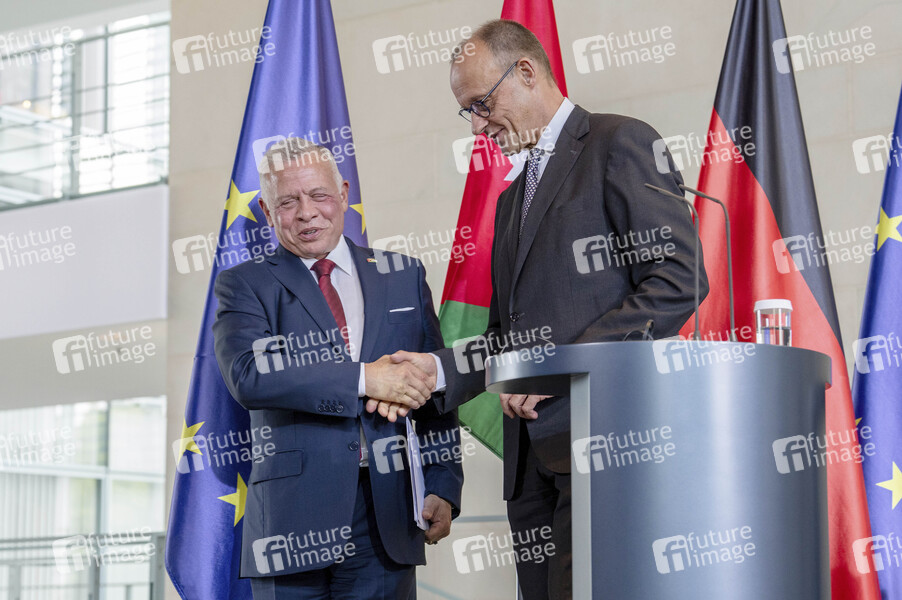 Abdullah II. bin al-Hussein und Friedrich Merz beim Empfang des Königs von Jordanien mit militärischen Ehren zu einem gemeinsamen Gespräch mit anschließendem Pressestatement im Bundeskanzleramt. Berlin, 29.07.2025