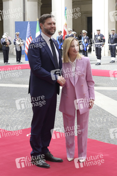 JD Vance und Giorgia Meloni beim Empfang des US-Vizepräsidenten im Palazzo Chigi. Rom, 18.04.2025