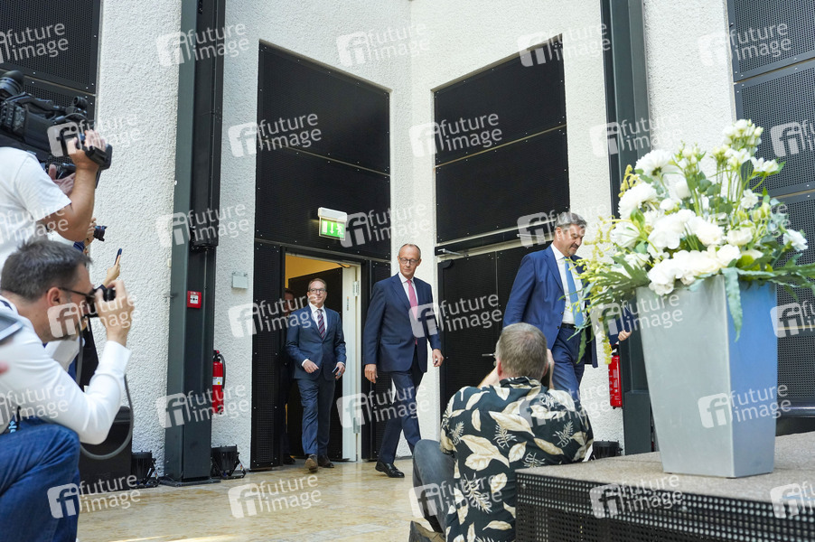 Friedrich Merz und Markus Söder bei einer gemeinsamen Pressekonferenz von CDU und CSU zur Kanzlerkandidatur der Union in der Vertretung des Freistaates Bayern beim Bund. Berlin, 17.09.2024