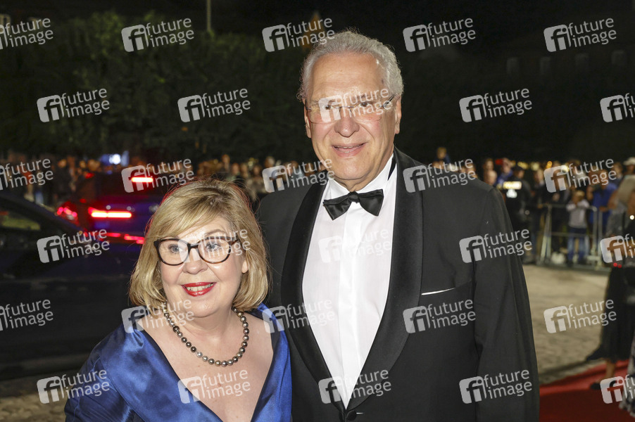 Joachim Herrmann mit Ehefrau Gerswid Herrmann beim Staatsempfang nach der Eröffnung der 113. Richard-Wagner-Festspiele 2025 mit der Neuinszenierung von 'Die Meistersinger von Nürnberg' im Neuen Schloss Bayreuth. Bayreuth, 25.07.2025
