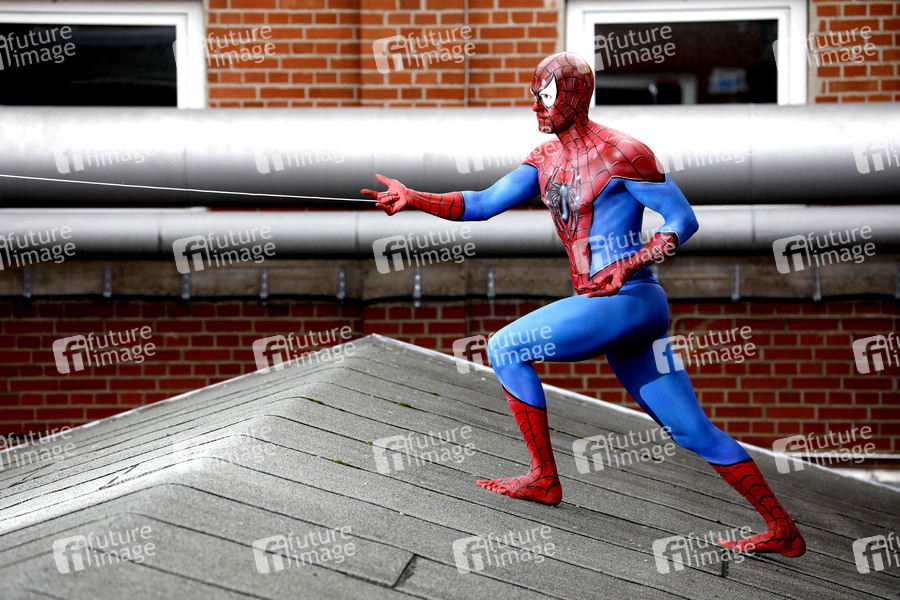 Farbkörper Cosplay, Cosplayer, Bodypainting, Body-Painting, Make-up, Latexappliaktionen, Latexteile, Maskenbildnerei, Maskenbildner, Körperkunst, Körperfarben, Projekt Farbkörper, Farbe, Bemalung, Kunst, Malerei, Spiderman, Comicfigur, Die Spinne, Superheld, Peter Parker, Gwen Stacy, Superheldin, Marvel, Comics, Kultur, superhero, superheroes, body painting, body art, project color body, colors