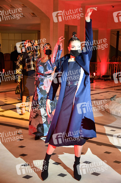 Models bei der Anja Gockel Fashion & Art Show 'Embraceland' im Rahmen der Berlin Fashion Week Autumn/Winter 2021/22 im Hotel Adlon. Berlin, 19.01.2021