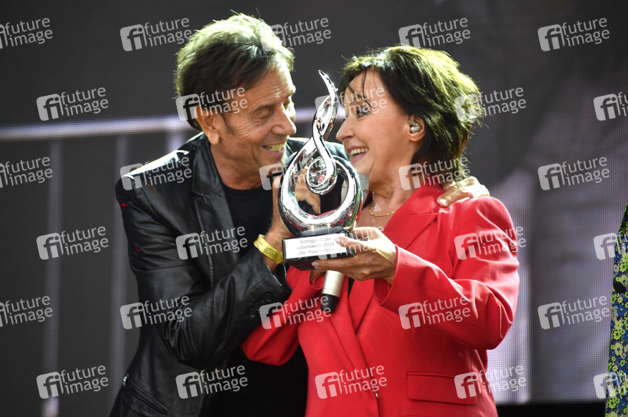 Wolfgang Ziegler und Ute Freudenberg beim SchlagerHammer Marathon 2021 im Erlebnispark Paaren. Paaren im Glien, 25.09.2021