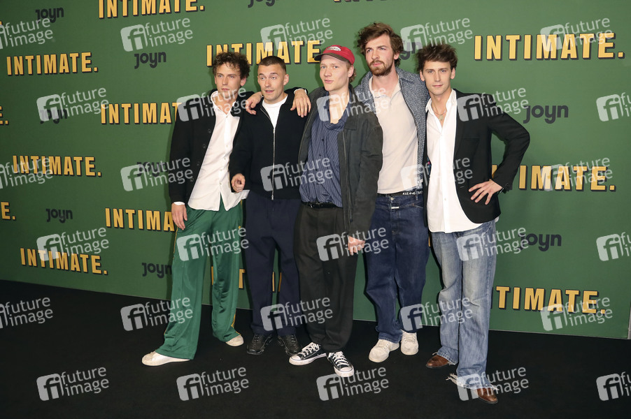 Oskar Belton, Leonard Fuchs, Bruno Alexander, Max Mattis und Emil Belton bei der Premiere der 2. Staffel der Webserie 'Intimate.' im Zoo Palast. Berlin, 01.04.2025