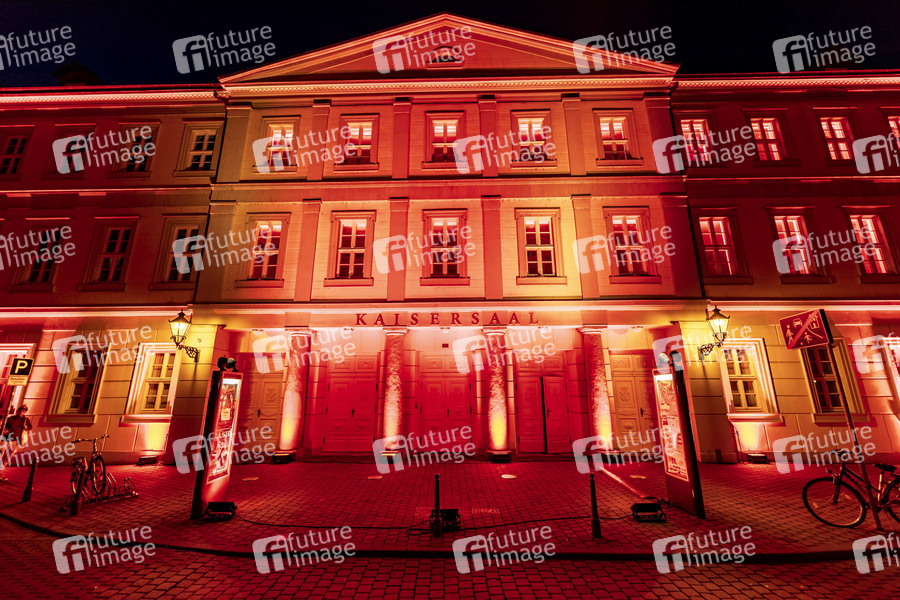 Beleuchteter Kaisersaal in der Futterstraße - Mit der bundesweiten Aktion 'Night of Light' macht die Veranstaltungsbranche auf ihre finanzielle Notlage durch die Corona-Krise aufmerksam. Erfurt, 22.06.2020