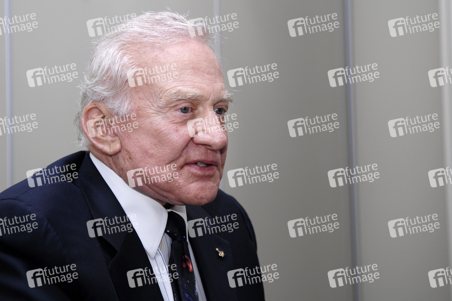 Buzz Aldrin bei einem Interview zum Dokumentarfilm 'Im Schatten des Mondes / In the Shadow of the Moon'. Hamburg, 28.01.2009